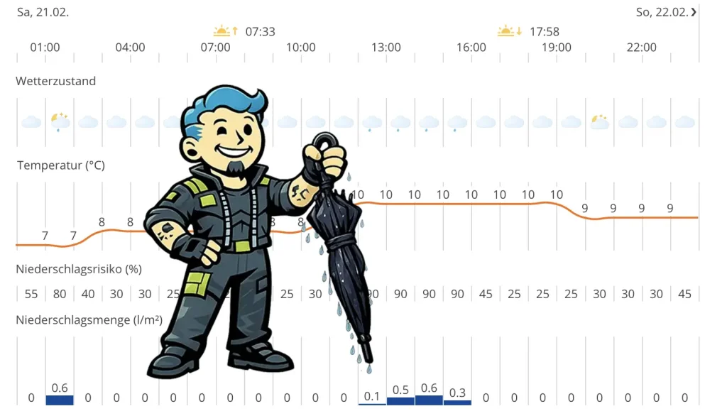 Von daher alles easy, ab grob 16:00 Uhr soll es trocken bleiben.